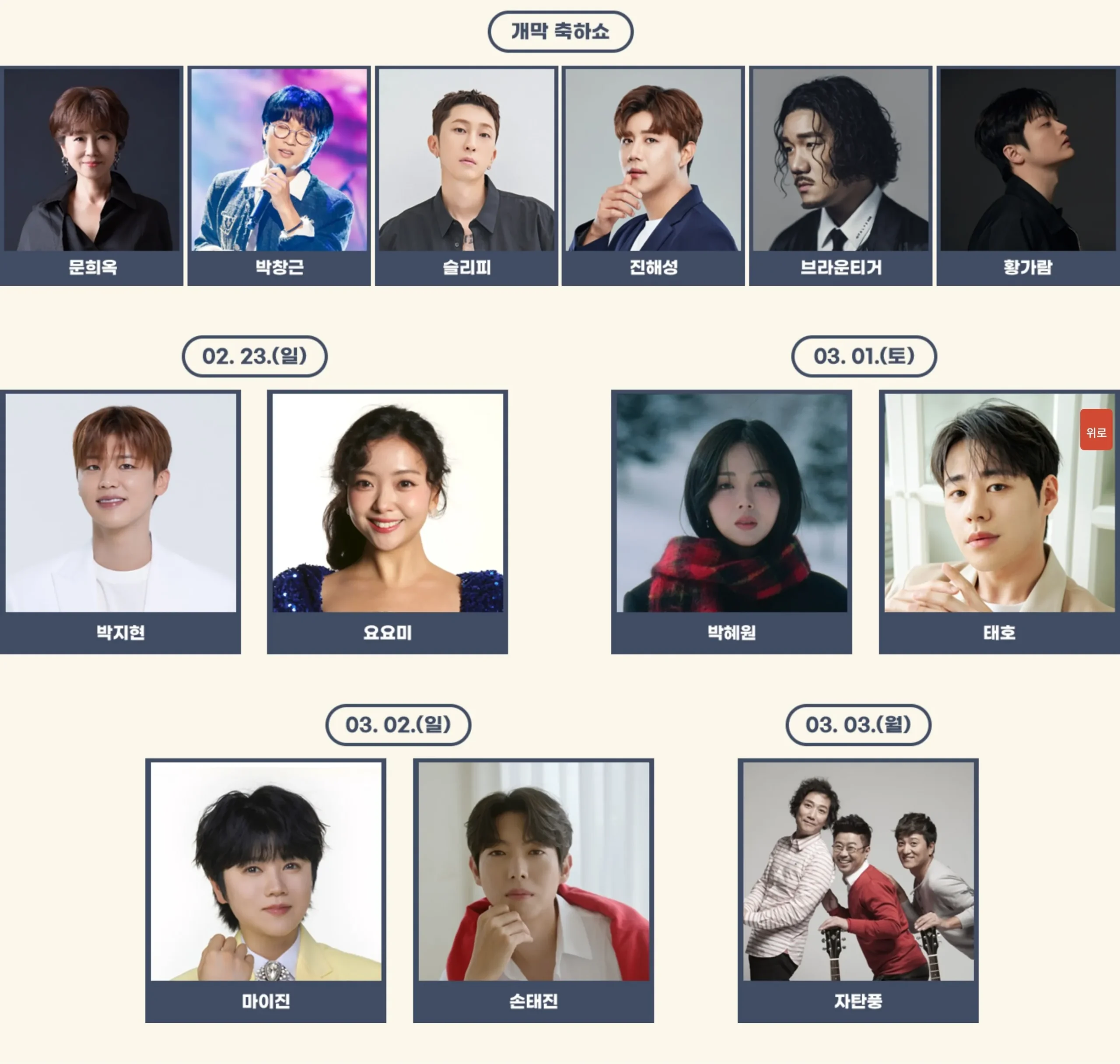 - 기타내용: 문화행사: 도공의 사랑이야기, 어린이 싱어롱쇼, 화목가마 ‘횃불 타악’ 공연 등